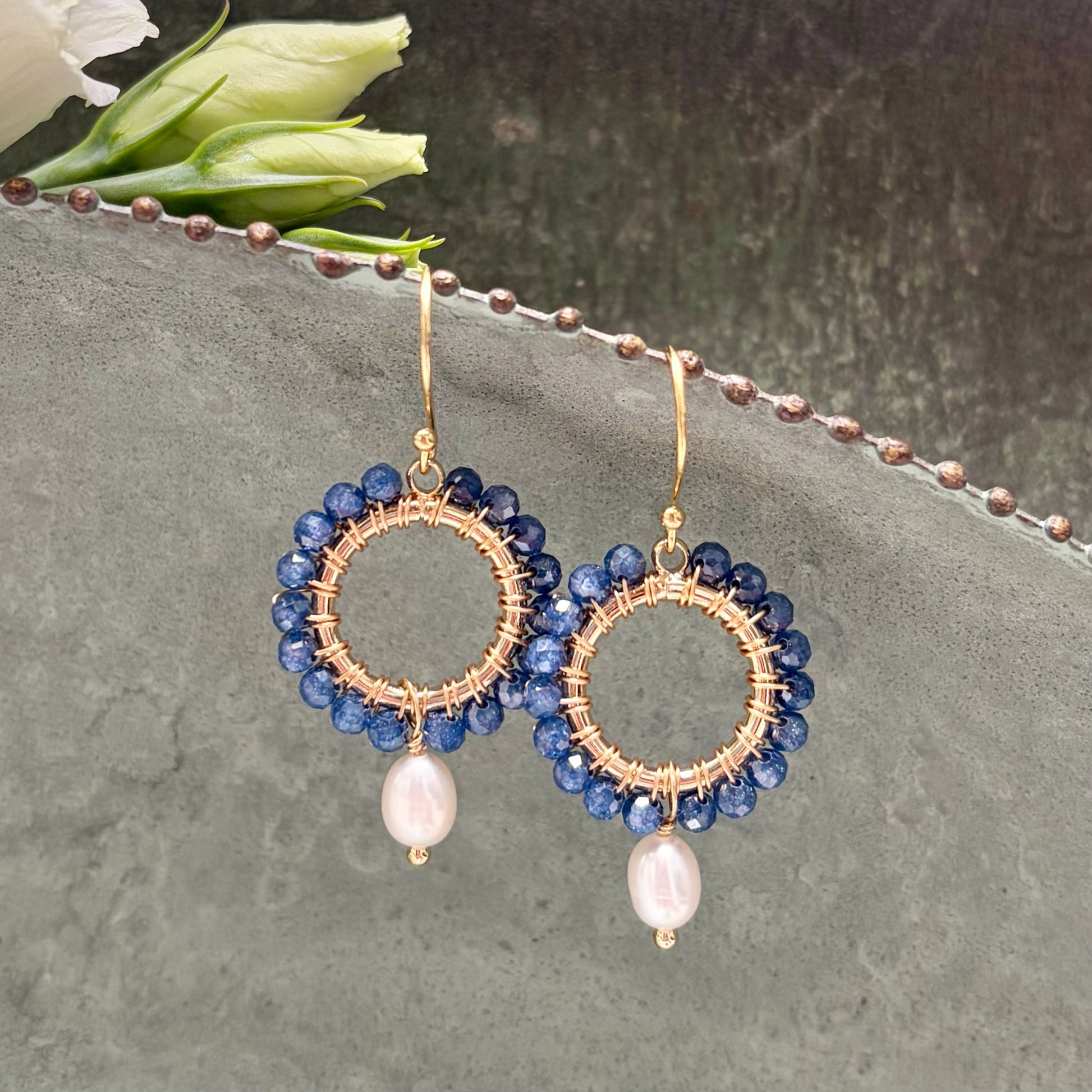 *Oxford Blue Quartz Mini Round With Pearl Drop Beaded Earrings