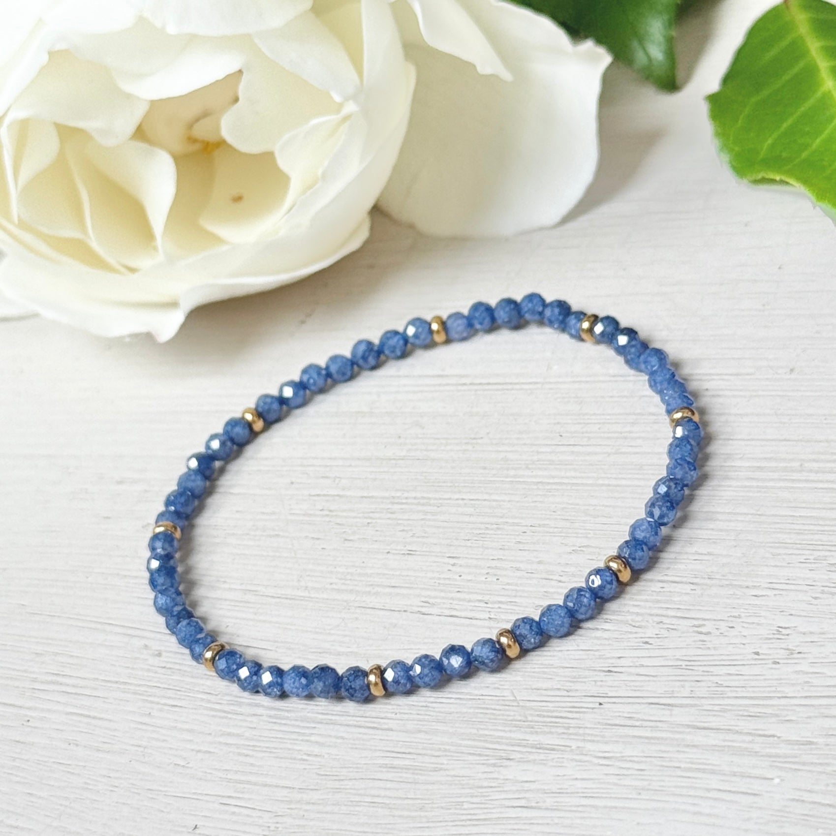 Oxford Blue Quartz & Single Gold Nugget Stretchy Gemstone Bracelet
