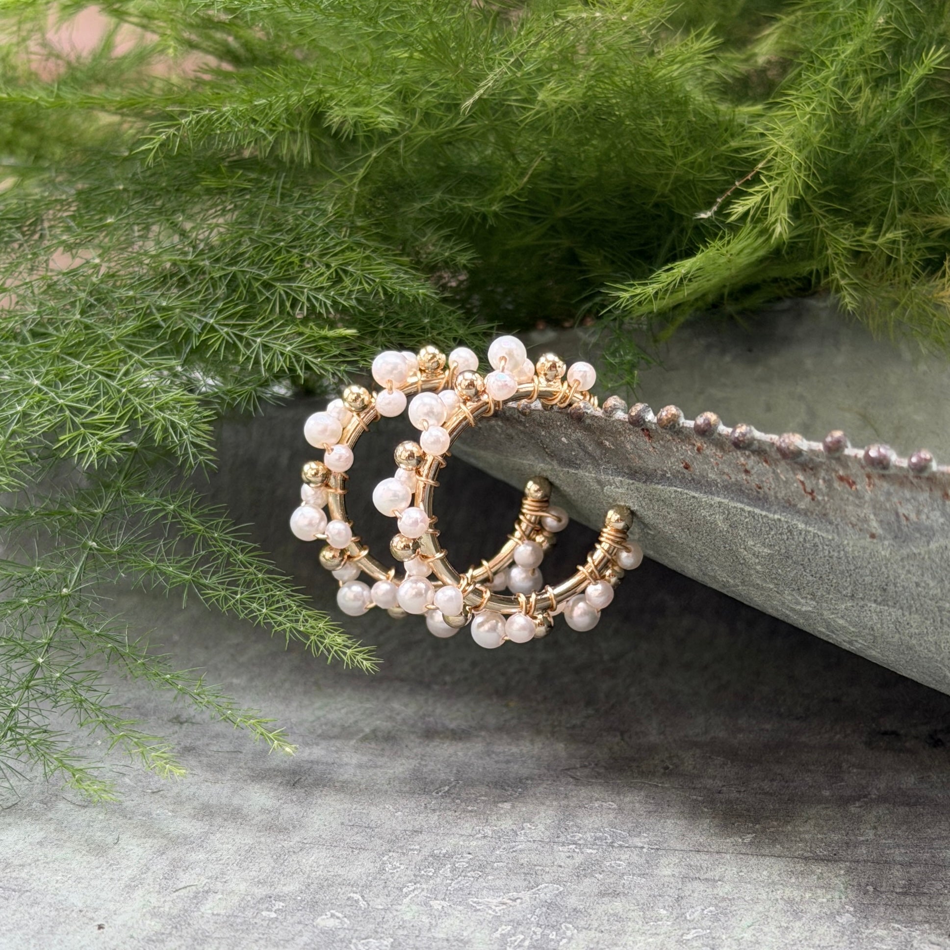 Pearl & Pearl Mini Bobble Hoop Beaded Earrings