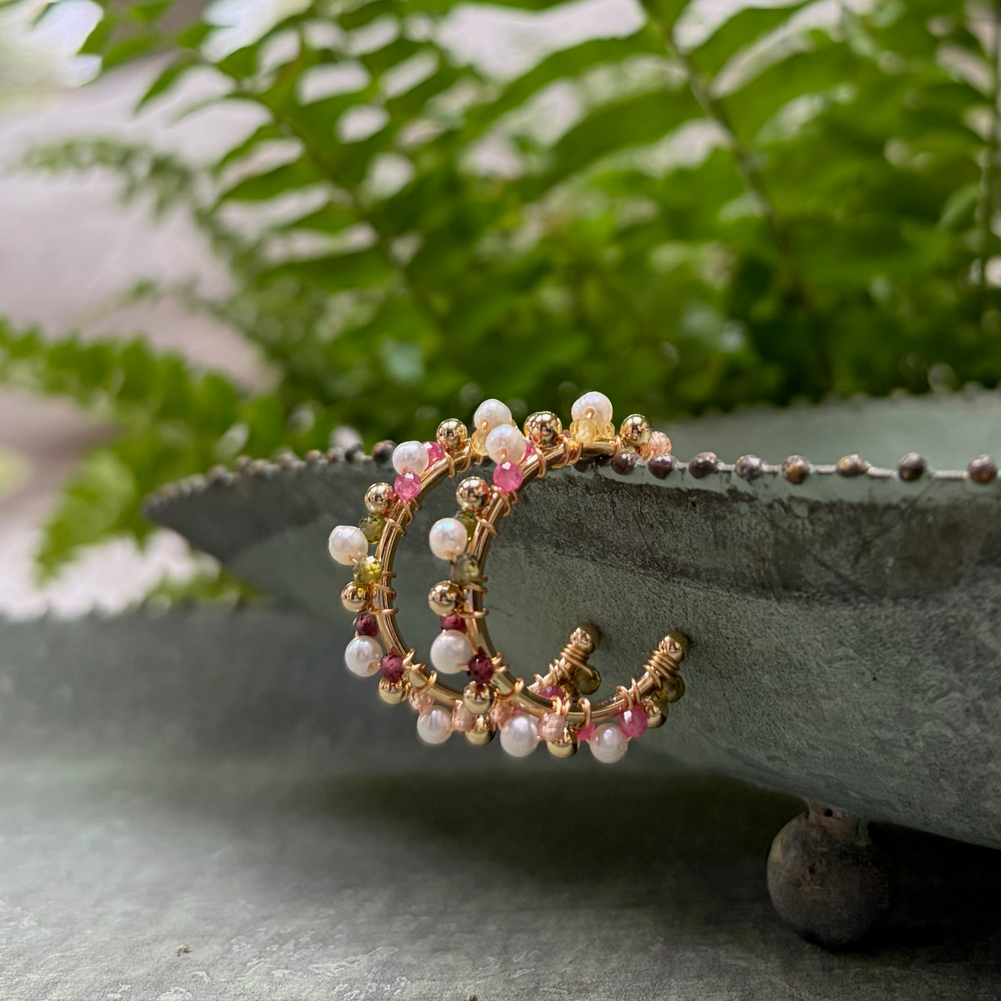 Handcrafted using semi-precious stones wrapped on 14ct gold vermeil hoops. Ear pins are 925 sterling silver with 14ct gold plating. Hypoallergenic.