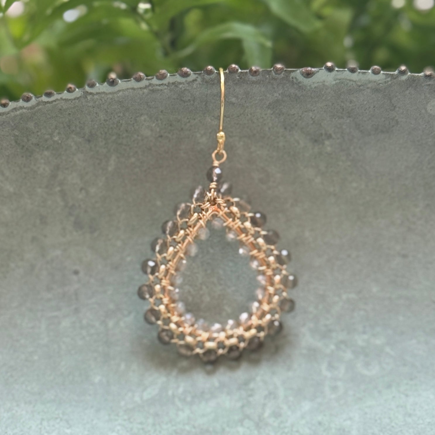 Taupe Agate & Crystal Medium Rolo Teardrop Beaded Earrings