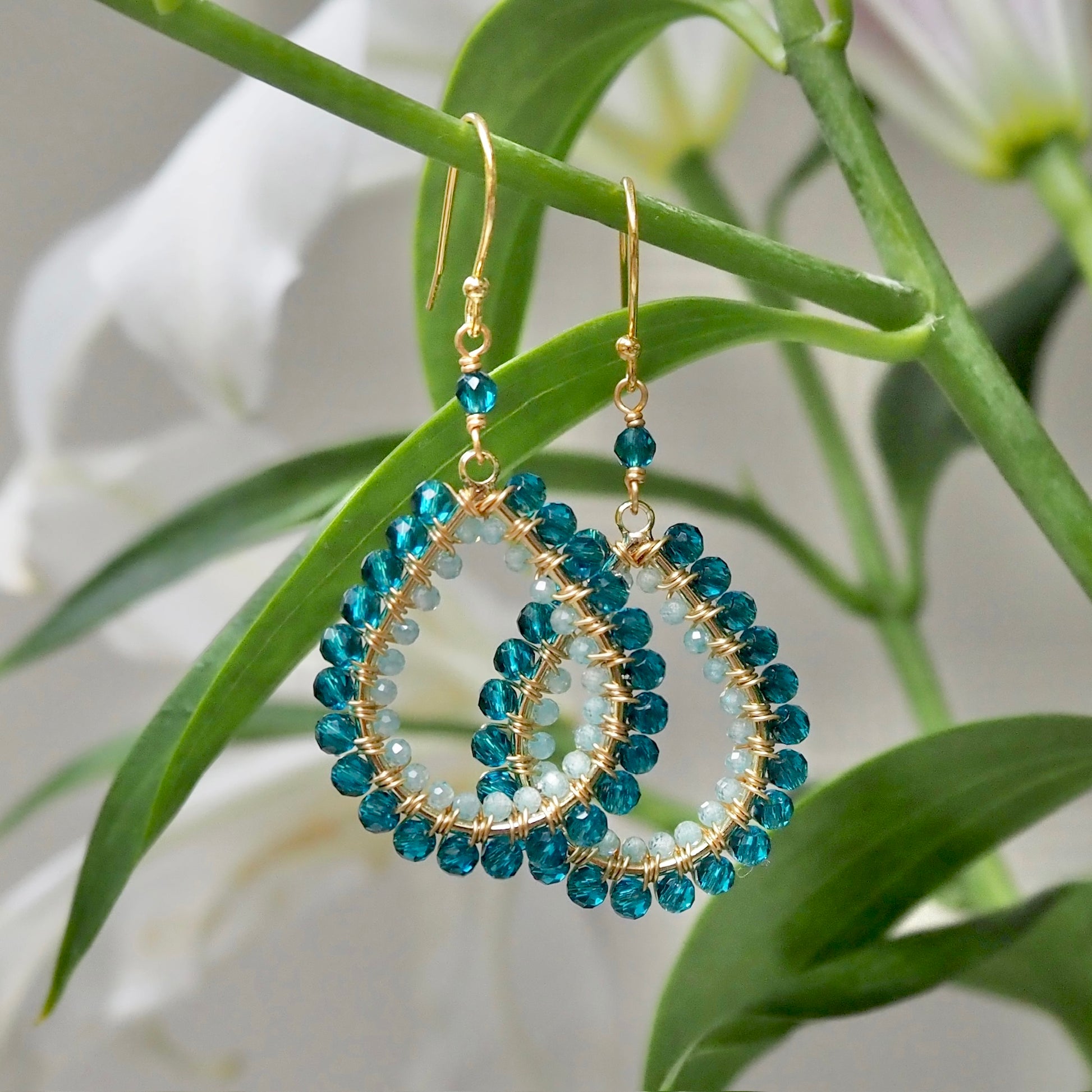 Handcrafted using semi-precious crystals/stones wrapped on gold vermeil shapes. Hooks are 925 sterling silver with 14ct gold plating. Hypoallergenic.